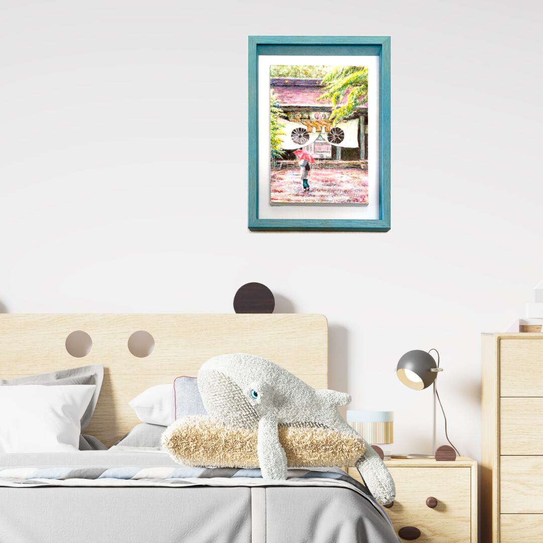 風景画「雨の大社にて」油彩画 SM/額付き