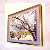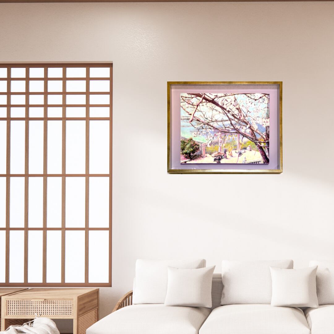 私は桜の時期にここを訪問しました。下宮から2時間ほどかけて歩いて登りましたが、美しい風景にすっかり疲れが飛んでいきました。坂出市で育った私にとって瀬戸内海は本当に大切な場所、心を込めて描きました。その甲斐あって、自分でも納得できる絵を描けたと思っています。