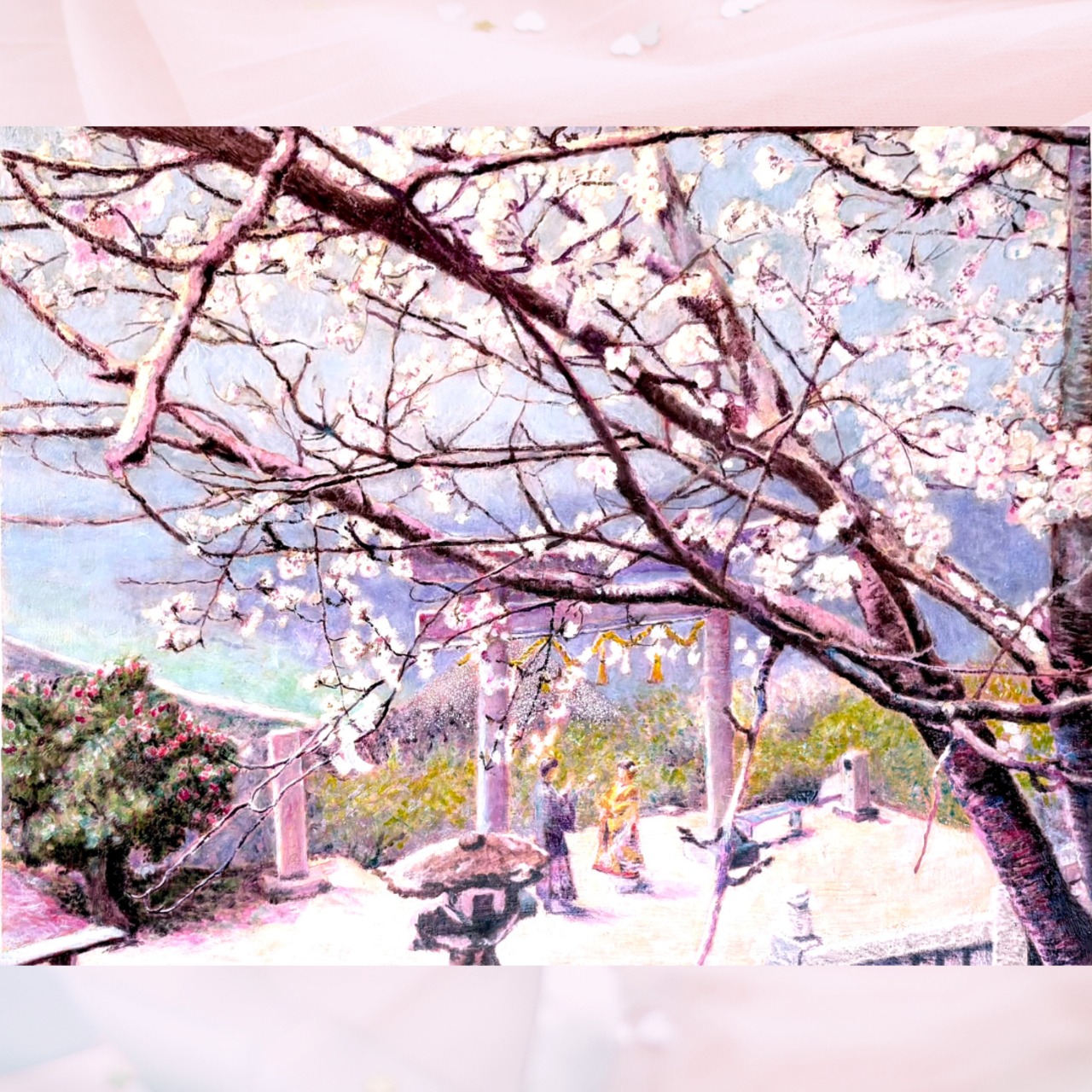 作品「天空の鳥居にて」油彩画・P10は、香川県観音寺市にある高屋神社の光景をモティーフにした作品です。