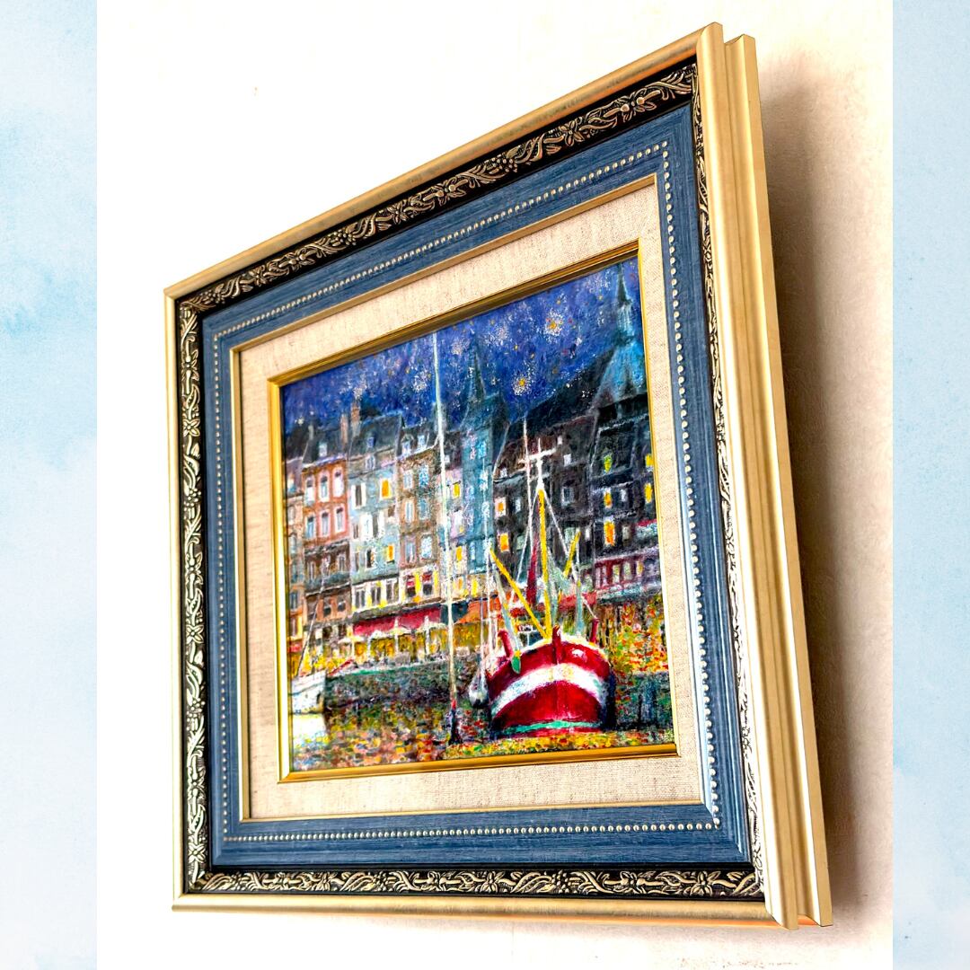 風景画「オンフルール・星降る港町」油彩画・F3/額付き