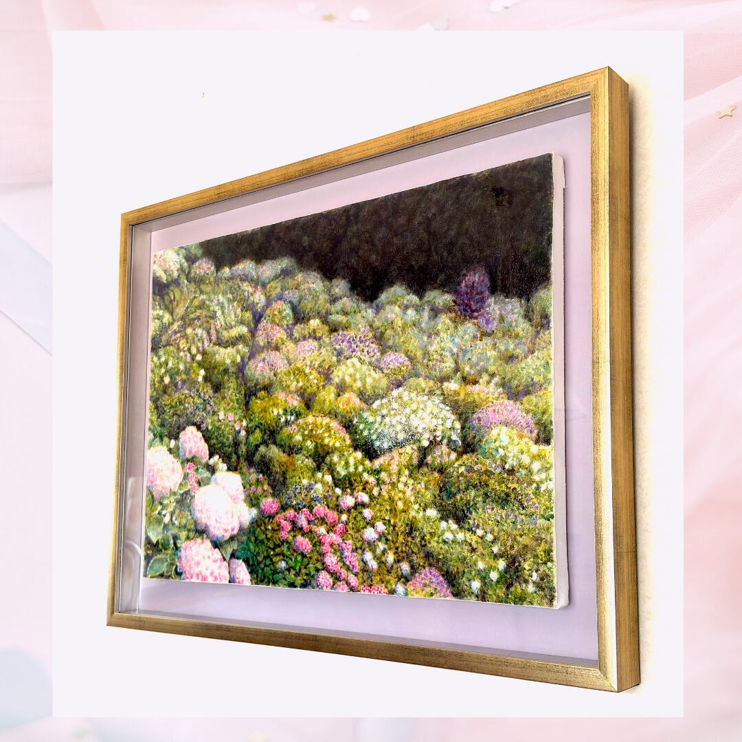 風景画「光あふれる新宮あじさいの里」油彩画 / B3 額付き