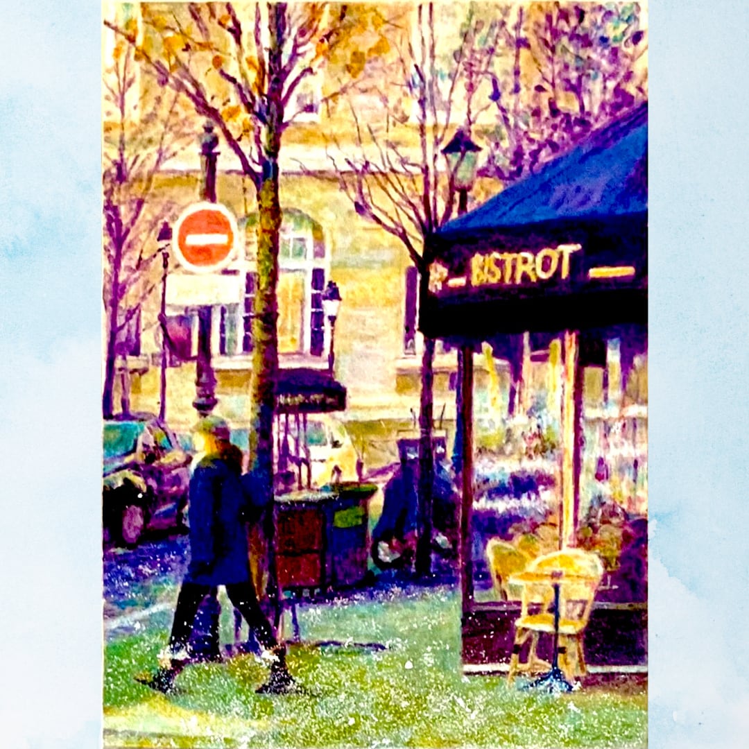 この絵は久しぶりに思いを込めてパリの街角を描いた作品で、私自身も気に入っている作品です。