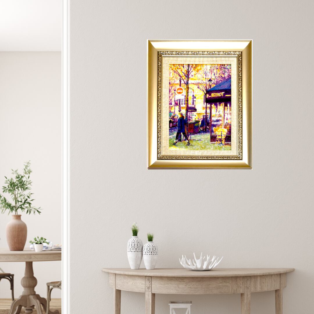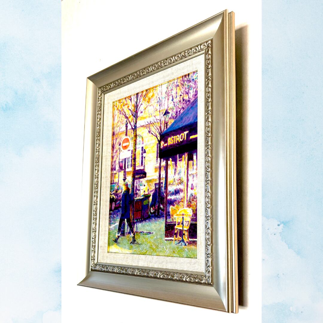 作品「パリの街角」は、浪漫溢れる古都・パリの街並みをモティーフにした油彩画です。
