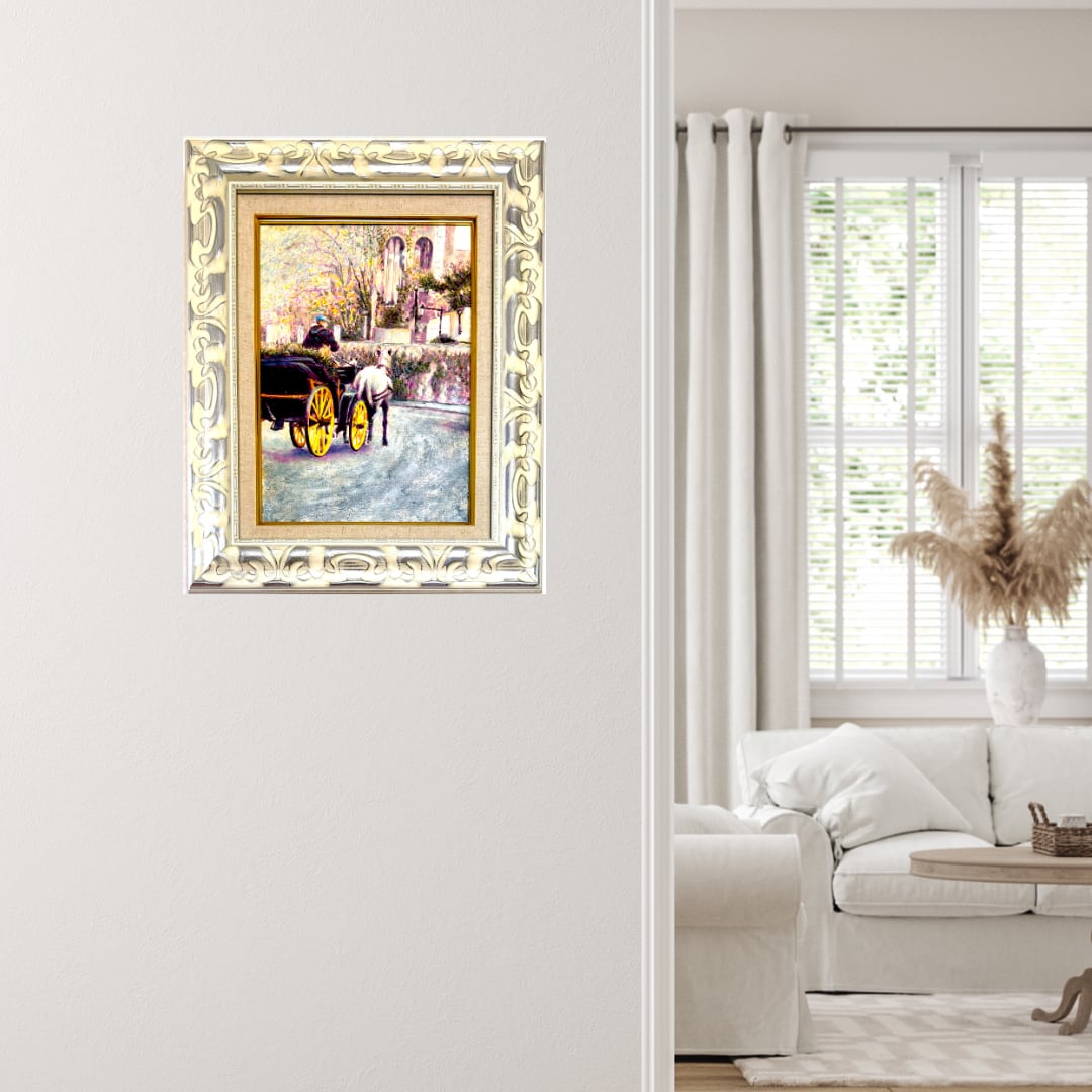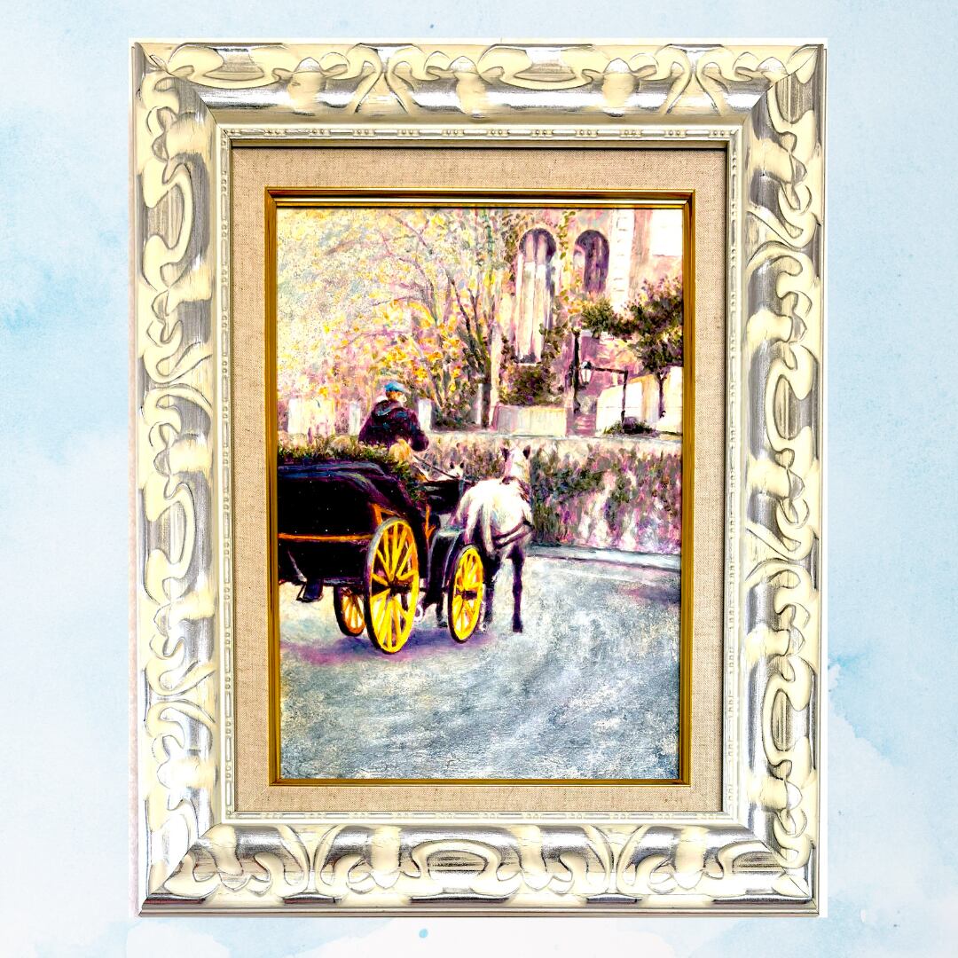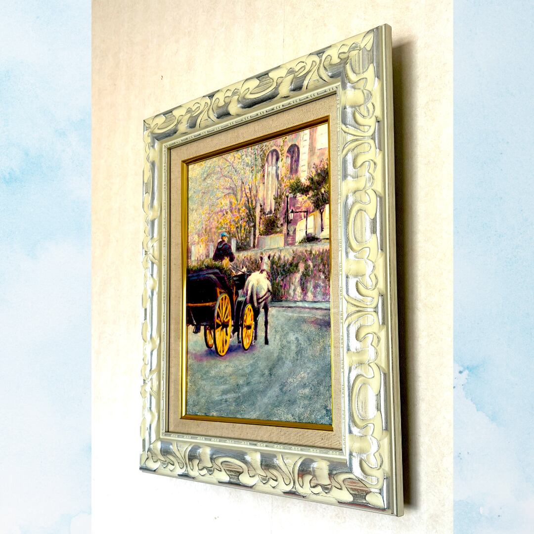 作品「馬車が走る街」油彩画・F4は、ポルトガル・シントラの光景をモティーフにした作品です。