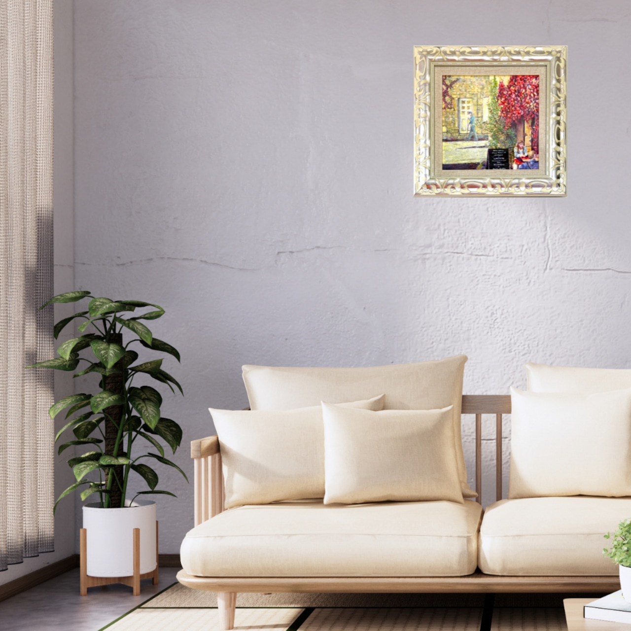 風景画「南仏ゴルドの街角」油彩画S3/額付き