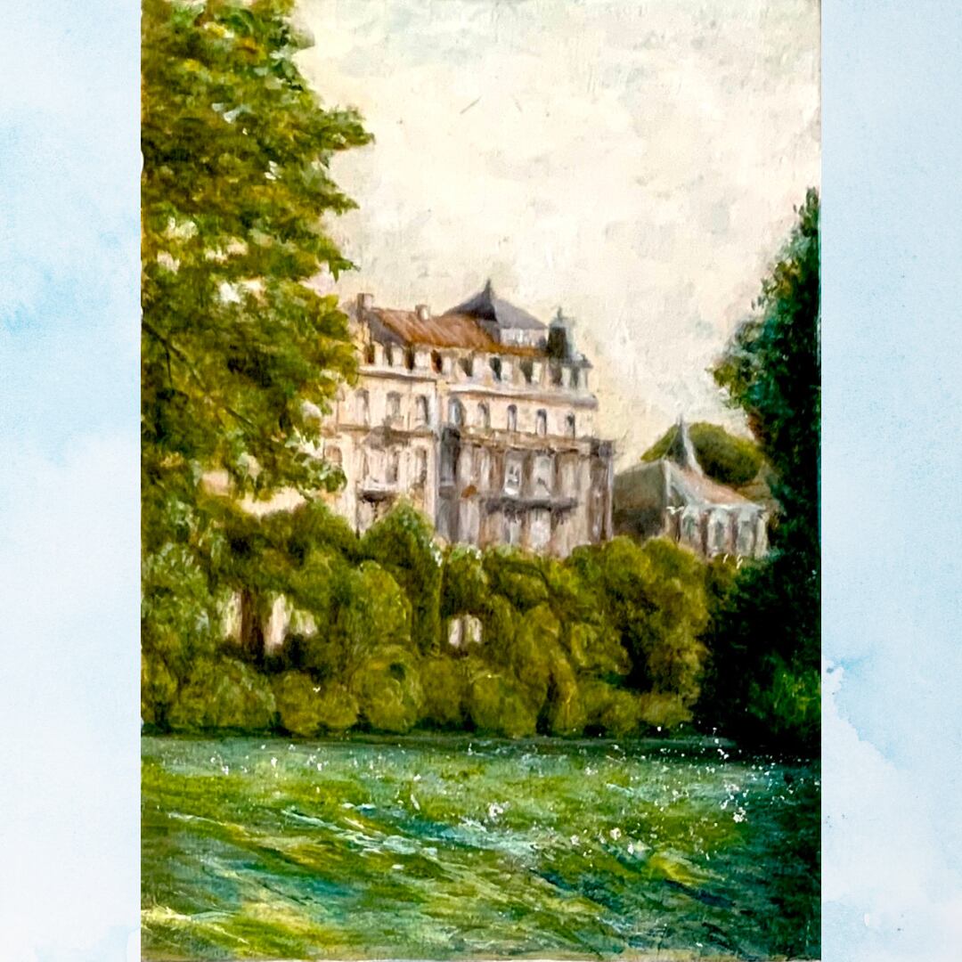 そんな美しい街を油彩とテンペラの混合技法を用いて、鮮やかで優しい絵に仕上げました。